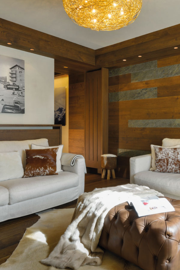 Entrando in questo piccolo appartamento completamente rivisitato, ci si immerge in un atmosfera estremamente accogliente data dalla tinta del legno utilizzato: il rovere spazzolato tinta “cioccolata”, impiegato indistintamente per pavimenti, rivestimenti e arredi. I 60 mq sapientemente organizzati danno vita ad uno spazio fluido ed elegante. La zona giorno composta da cucina e soggiorno è caratterizzata da un elemento rivestito in pietra, con funzione di dispensa e parete attrezzata, che suddivide lo spazio; il materiale inserito all’interno del rivestimento in boiserie conferisce all’ambiente una certa continuità ed omogeneità. La camera padronale e quella dei ragazzi coi relativi servizi sono state ricavate in spazi ridotti a dimostrazione di un’attenta progettazione, che ha permesso l’inserimento di armadi, letti e scrivanie.