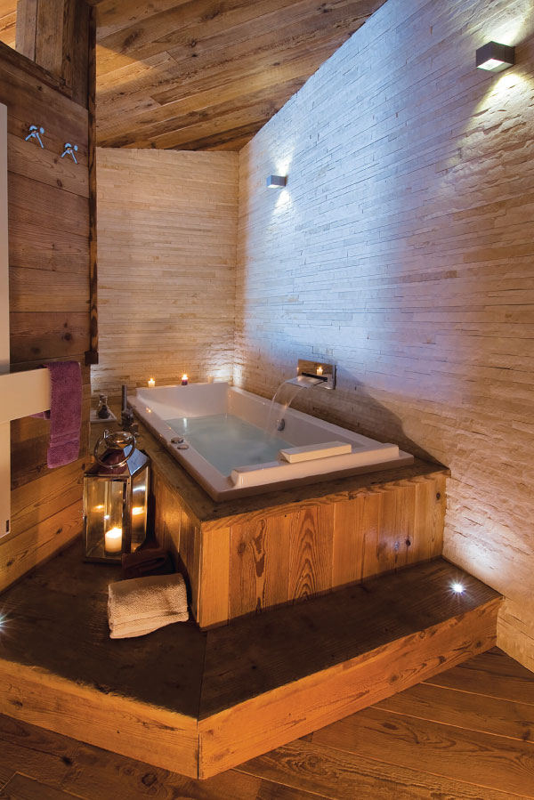 L’abitazione, disposta su due livelli, si sviluppa in un’ampia zona giorno, una zona relax, una camera padronale con bagno e una area dedicata ai ragazzi. La filosofia di fondo nell’intervento è di offrire una calda atmosfera di montagna senza scadere in effetti ridondanti o accostamenti forza\. Gli spazi sono sta\ riorganizza\ privilegiando ampiezza e funzionalità, facendo interagire gli aspetti più tradizionali dell’architettura alpina con elementi di design moderni e lineari. Accanto ai pavimenti, ai soffitti e alle pareti rivestite in legno antico, spiccano così materiali come pietra, ferro ossidato e vetri di concezione più contemporanea. Anche gli arredi su disegno, così come tutta la falegnameria, sono stati sviluppati seguendo lo stesso concetto: forme semplici e minimali che, attraverso la materia, dialogano con il passato e le tradizioni, senza ricalcarne le linee.